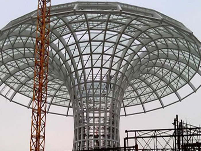 二、球形网架结构因其结构新颖,受力合理,自重轻、用钢量低等优点。如大型体育场馆球形江苏螺栓球网架、公共场馆球形网架、电厂江苏螺栓球网架、水泥工业球形网架、仓储物流球形网架、江苏干煤棚工业球形网架、江苏收费站江苏加油站球形网架、展览中心、影剧院、商场、航站楼、候车厅、工厂江苏车间、仓库、电视塔等球形螺栓球节点网架。国内球形网架结构主要分为:江苏焊接球节点网架及螺栓球节点网架两种。螺栓球节点网架其构件工厂内加工量较大,现场安装便捷,适用于现场工期紧,江苏施工条件、用电量受制约,网架形状复杂、江苏杆件定位困难的异形结构。螺栓球节点球形网架系统基本由江苏杆件、螺栓球、支撑支座等组成。按照节点形式可分为交叉江苏桁架体系、四角锥体系、三角锥体系等。支撑方式多为固定支座支撑。对于大面积、大跨度及有特殊受力或伸缩要求的网架结构可采用橡胶支座、滑移支座、球铰支座等支撑形式,以满足结构自身的受力稳定、均衡,便于内力释放等设计要求。